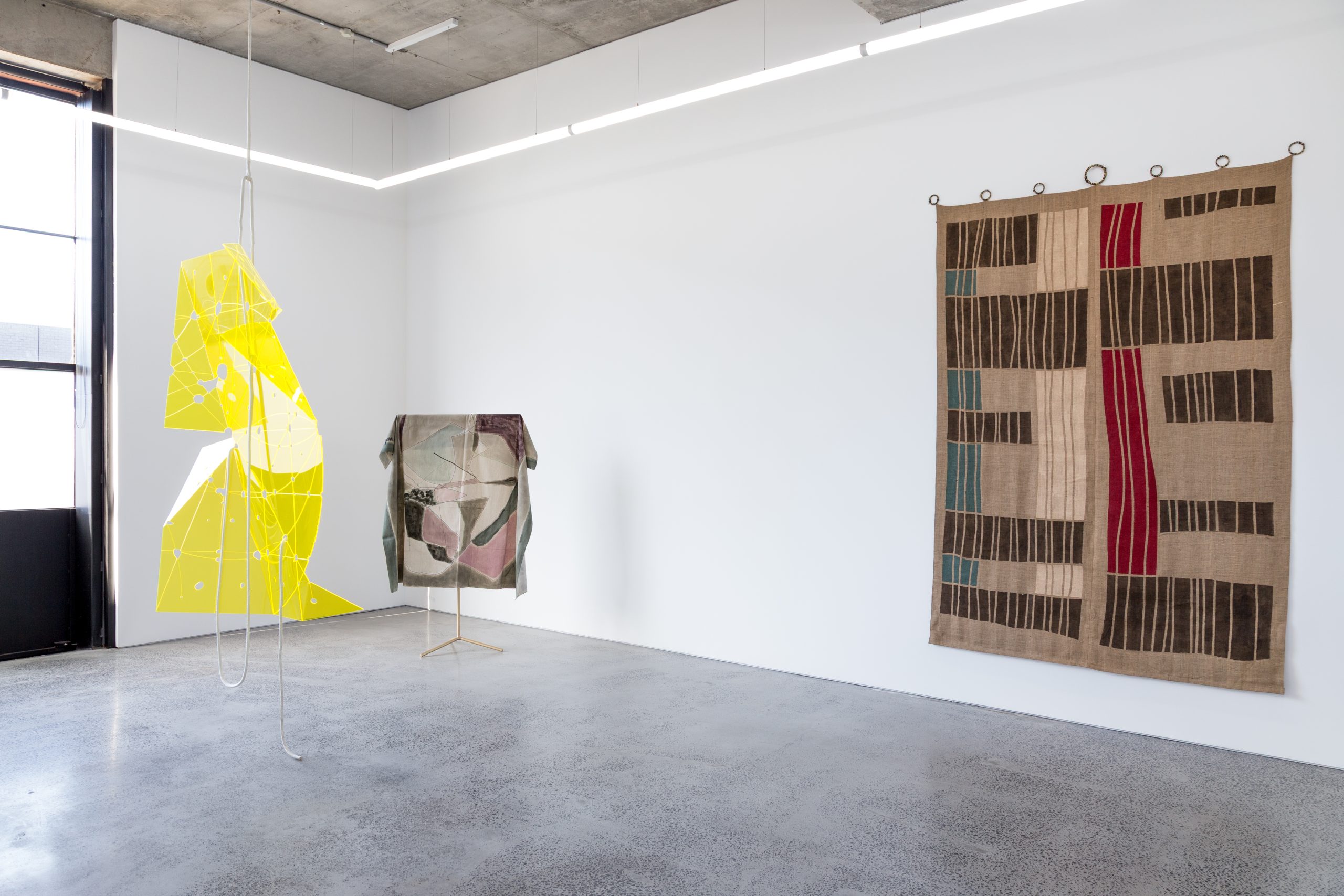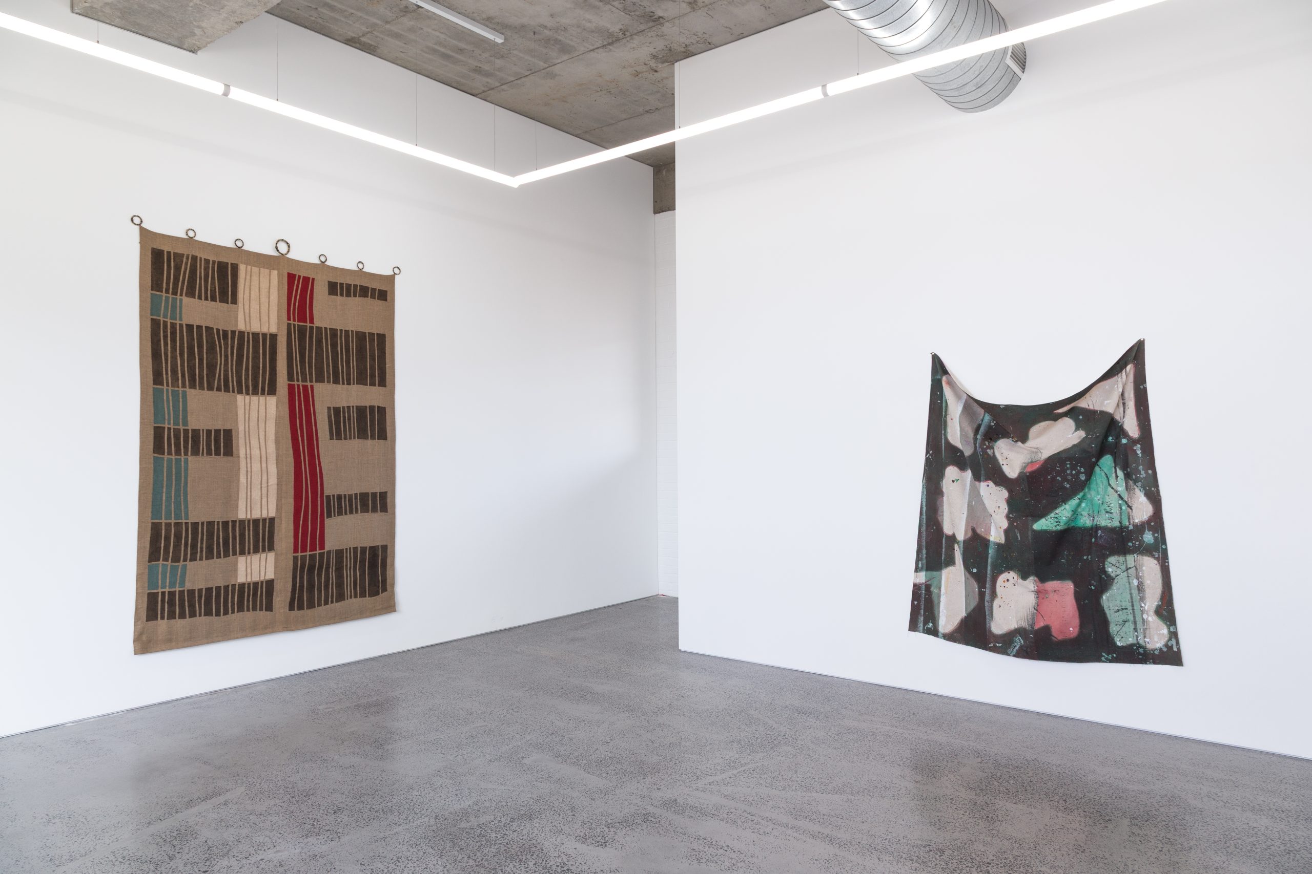 Elizabeth Pulie, #108 (Curtain for E) 2020, acrylic on hessian, metal rings, mixed fibre 270 x 190cm